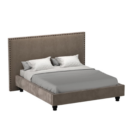 Двуспальная кровать с высокой спинкой и декоративными элементами . Спинка декорирована пуговицами. Кровать установлена на фигурные деревянные ножки. Выполняется в трёх вариантах размеров спального места: 200х200 cм, 180х200 cм и 160х200 cм. Основание: металлическое с эластичными латами из фанеры. Ножки: декоративные деревянные элементы на металлической опоре. Высота спального места: 42 cм.