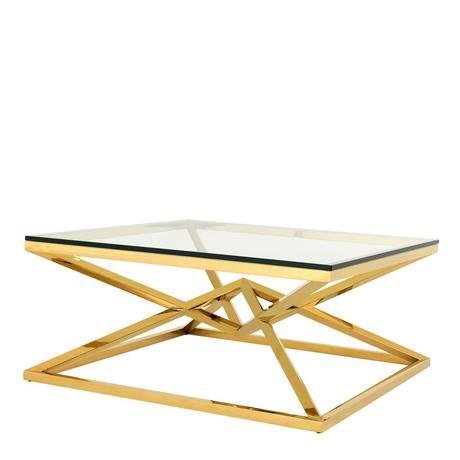 Бренд: Eichholtz Журнальный столик. Размер см: 45х100х100. Цвет: Прозрачный/Золотой. Материал: Металл/Стекло.