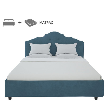 Кровать "Palace" Велюр цвета морской волны с Матрасом "Амстердам" 140х200
