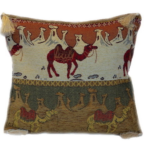Гобеленовые подушки в восточном стиле, ассоциируются с караваном в пустыни. Песочные, кирпичные, охристые цвета подушек сделают еще уютнее Ваш дом. Размеры подушек примерно 42х42см. Ткань гобелен. с кисточками. На молнии. Наполнитель холлофайбер. Если сделать более плоскую подушку с наполнителем можно использовать как сидушки на стулья или на пол. Если хотите использовать как сидушки на стулья, напишите об этом, мы сделаем более плоский наполнитель. Подушечки двухсторонние. Можно стирать в стиральной машине. Подушки можно купить по отдельности.